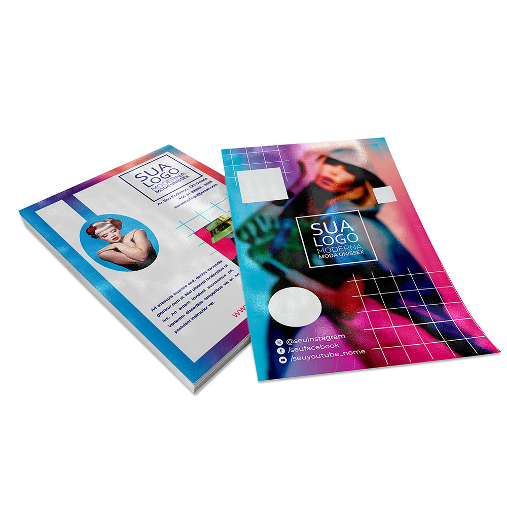 PB7008A PB7008A PANFLETOS, FLYERS E FOLHETOS COUCHÊ 150G VERNIZ UV TOTAL FRENTE E VERSO 300X200MM Colorido frente e verso - 100 un.