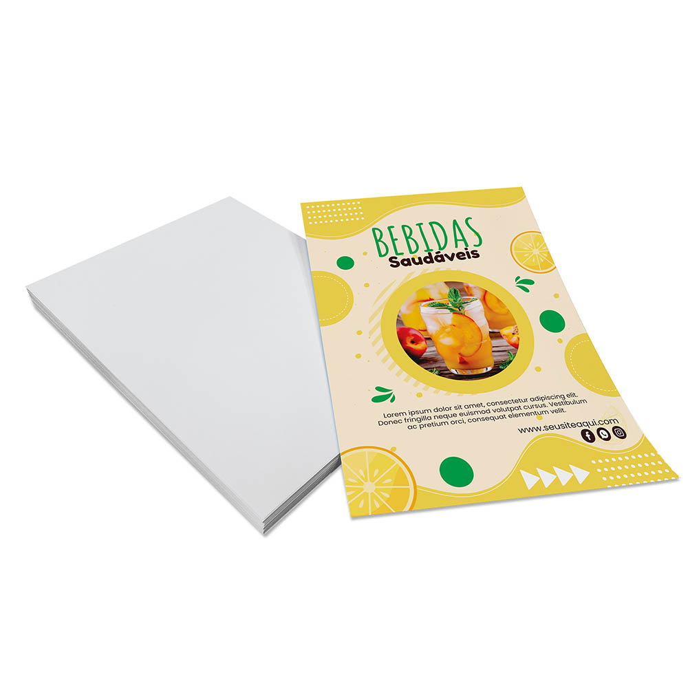 PANFLETOS, FLYERS E FOLHETOS COUCHÊ 90G SEM VERNIZ 300X210MM Colorido frente - 100 un.