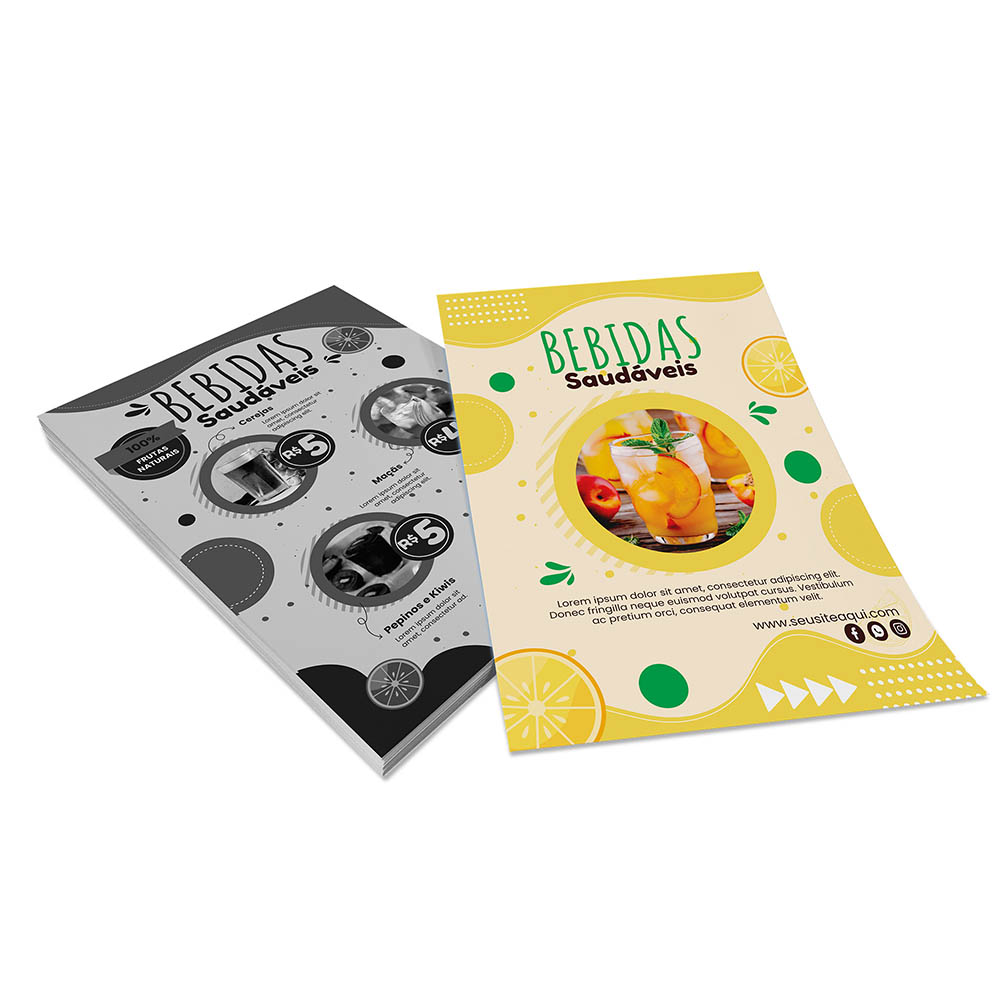 PANFLETOS, FLYERS E FOLHETOS COUCHÊ 90G SEM VERNIZ 300X210MM Colorido frente e preto e branco verso - 100 un.
